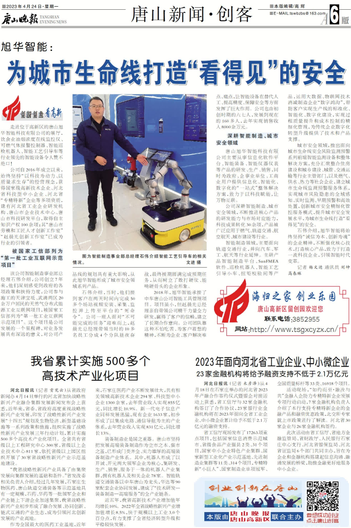 近期,《唐山晚报》记者对唐山市高新区重点企业进行采访,唐山qy球友会(千亿)智能科技有限公司位列其中。在采访过程中,记者就我公司的开展历程、主营产品等进行多角度、深层次分析,并将此篇报道刊登在《唐山晚报》及《环渤海新闻网》上。